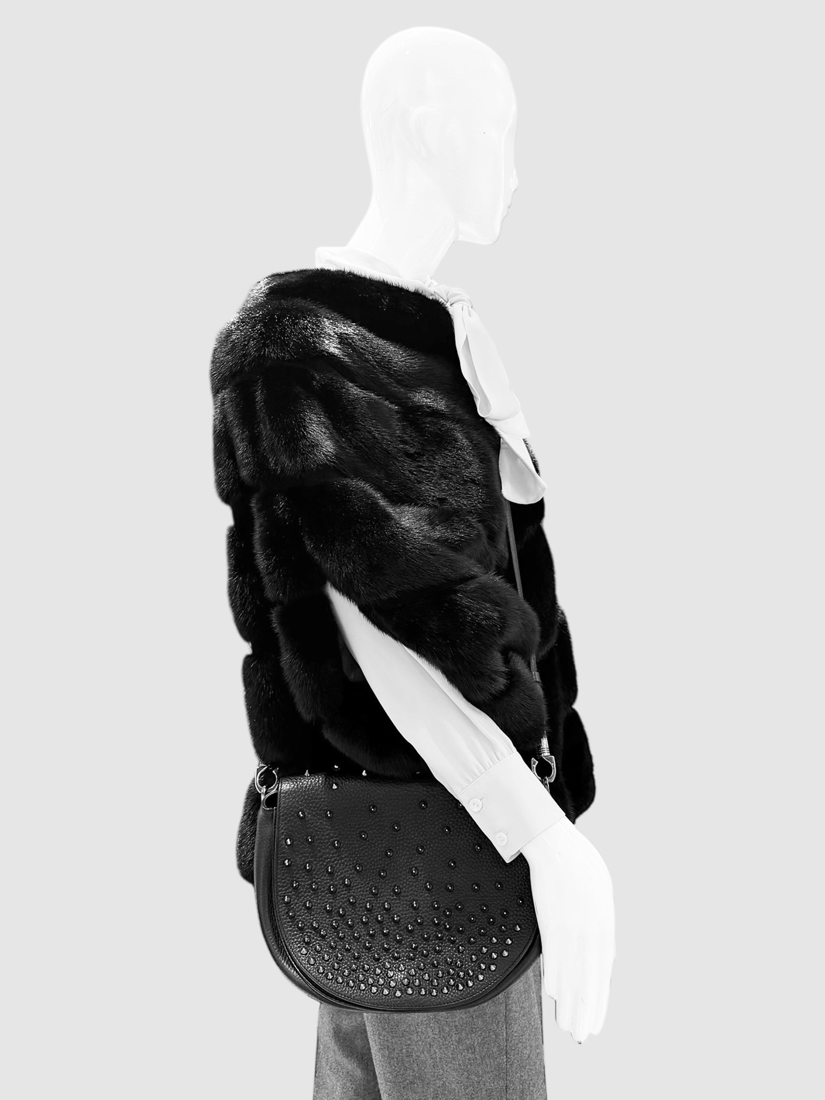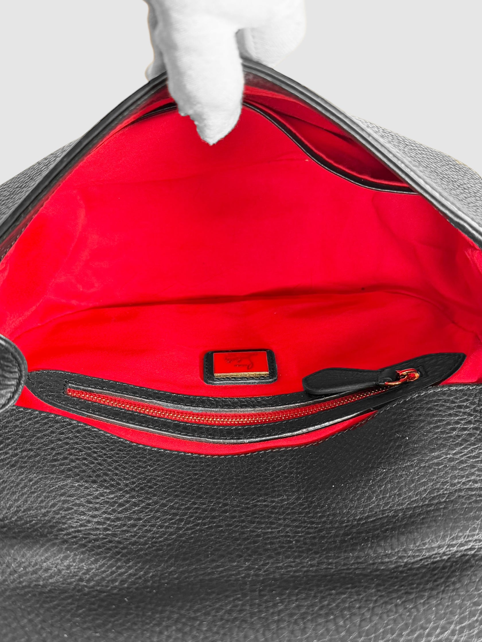 Christian Louboutin Black Leather Spike Studded Top Handle Bag.