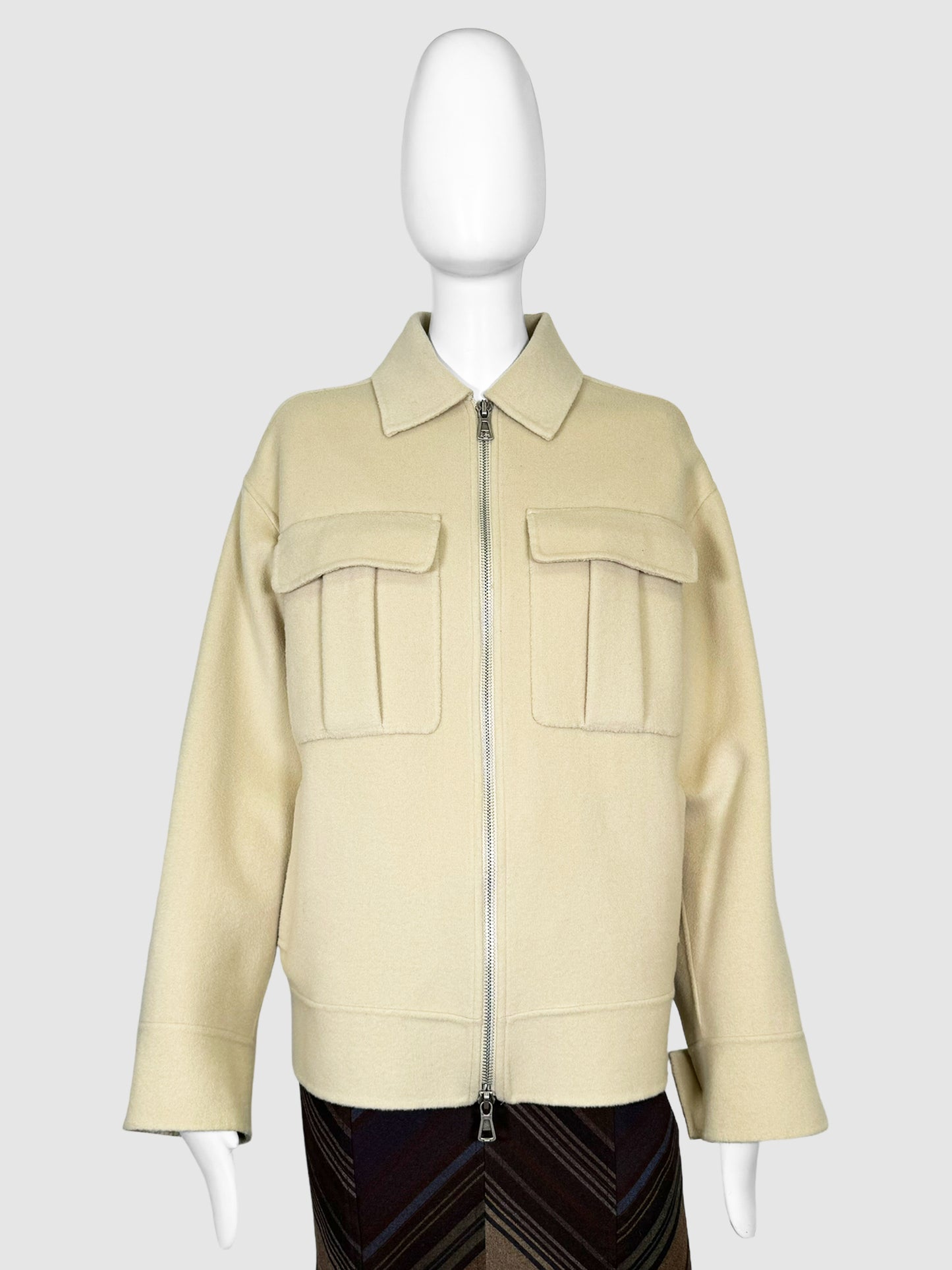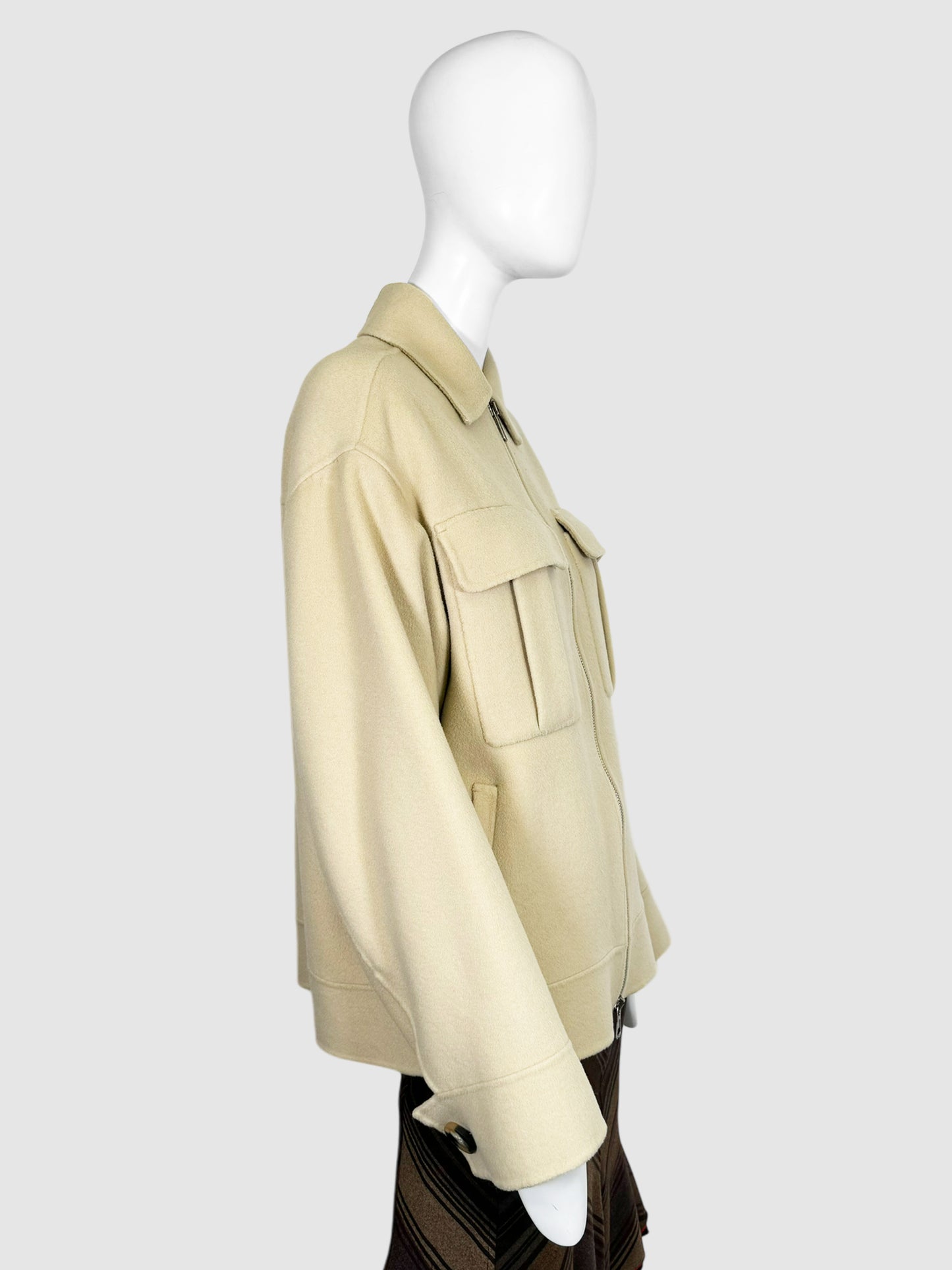 Sportmax Beige Wool Double Zip-Up Jacket, Size 0.