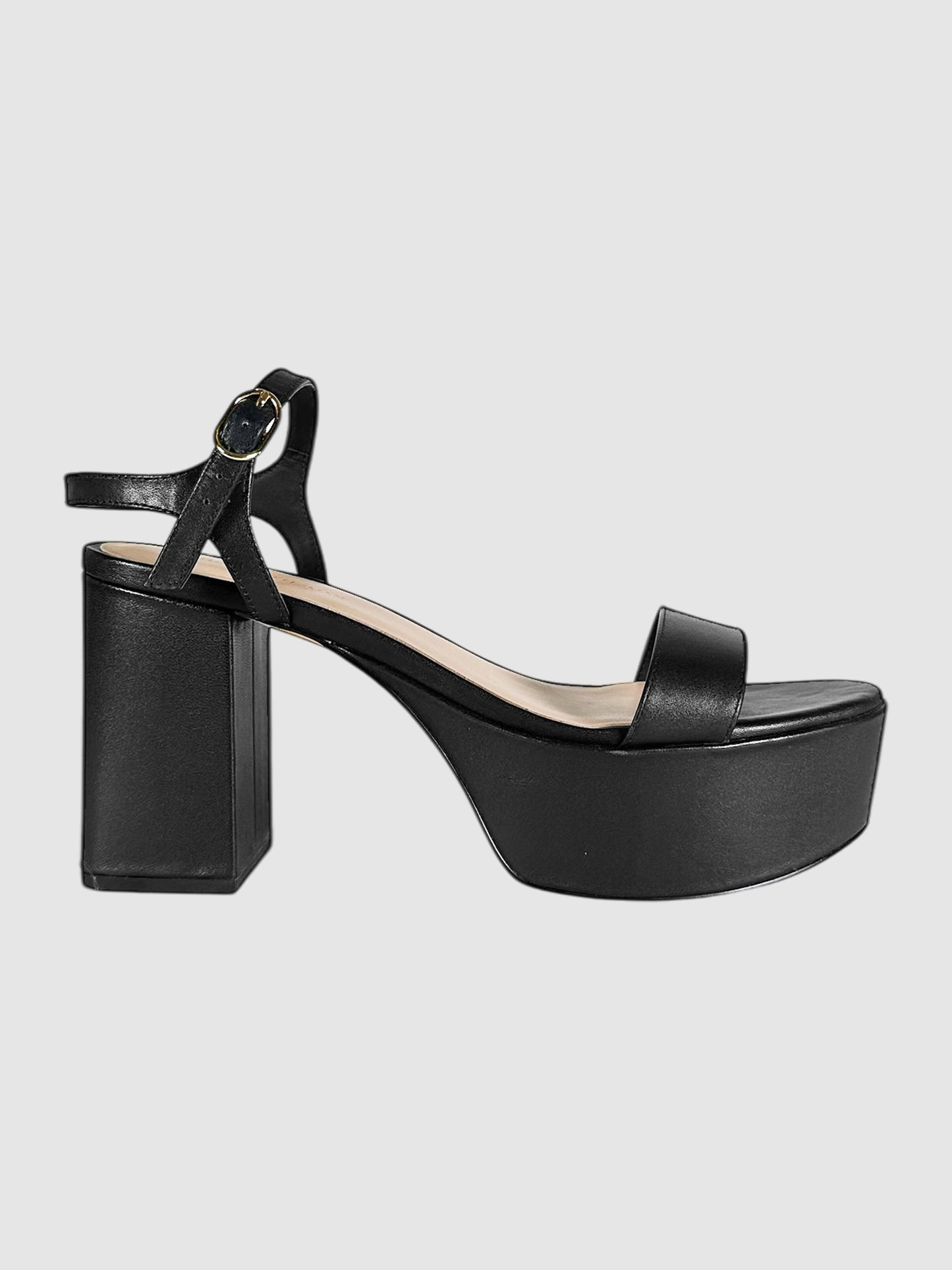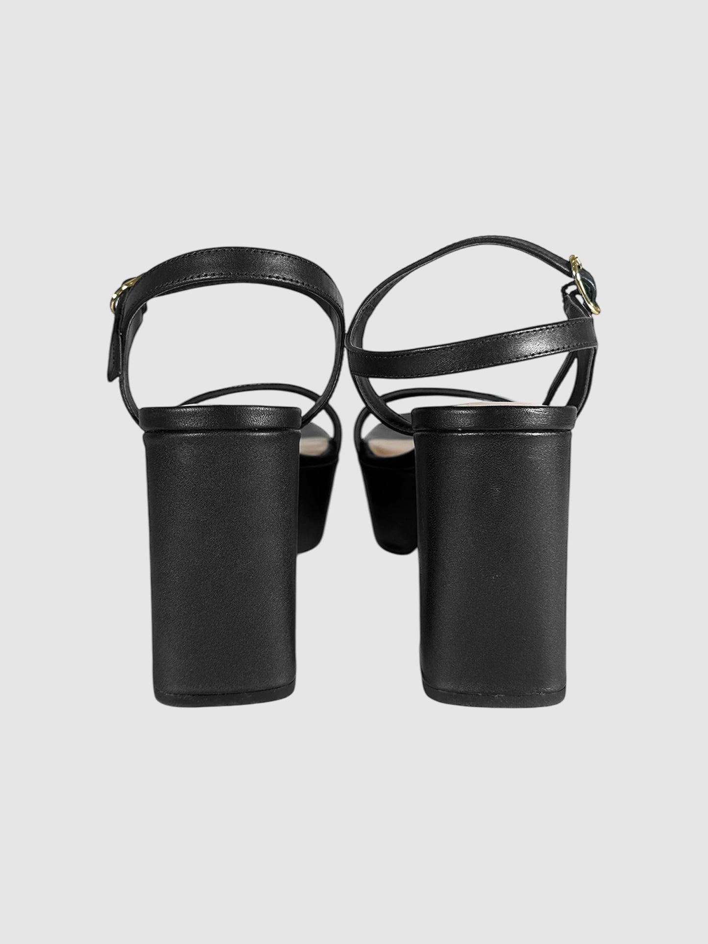 Stuart Weitzman Black Leather Ankle Strap Platform Sandals - Size 8.