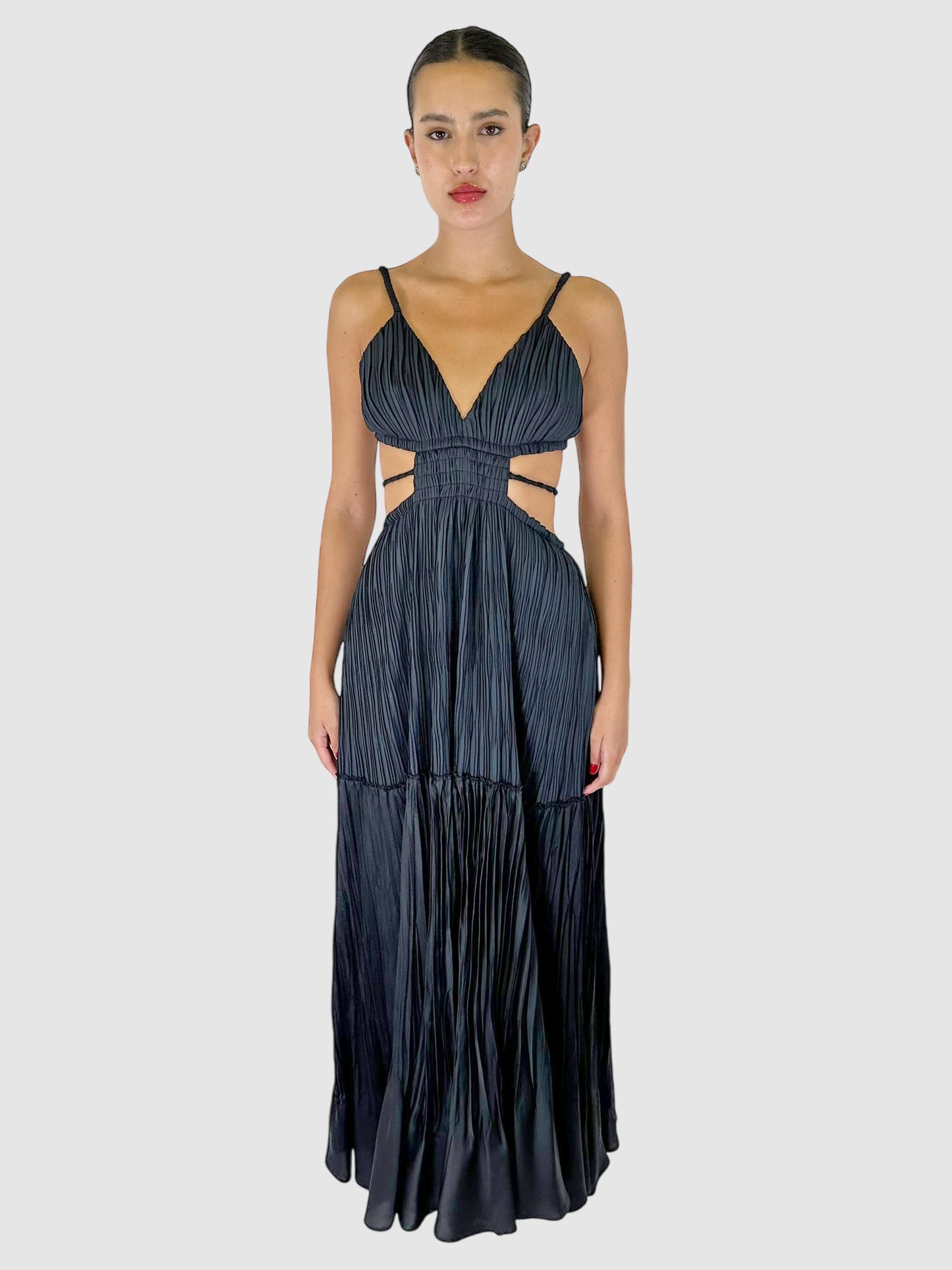 Jonathan Simkhai Navy Blue Sleeveless Strappy Pleated Maxi Dress - Size 4.