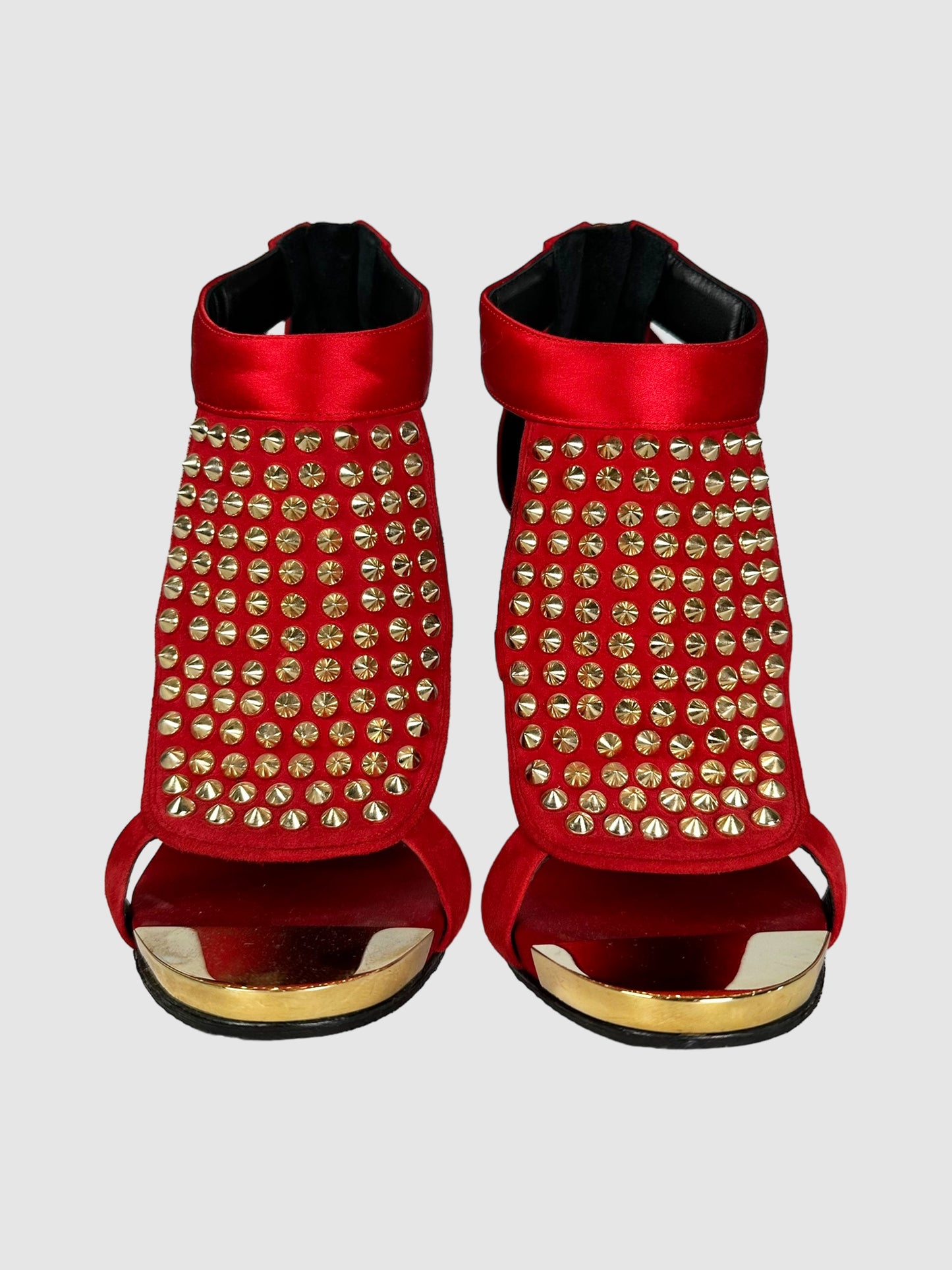 Giuseppe Zanotti Red Suede Studded Pumps - Size 37.