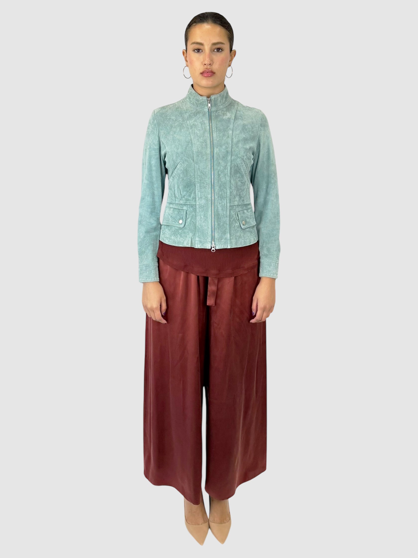 TC Turquoise Suede Moto Zip-Up Jacket, Size Medium.