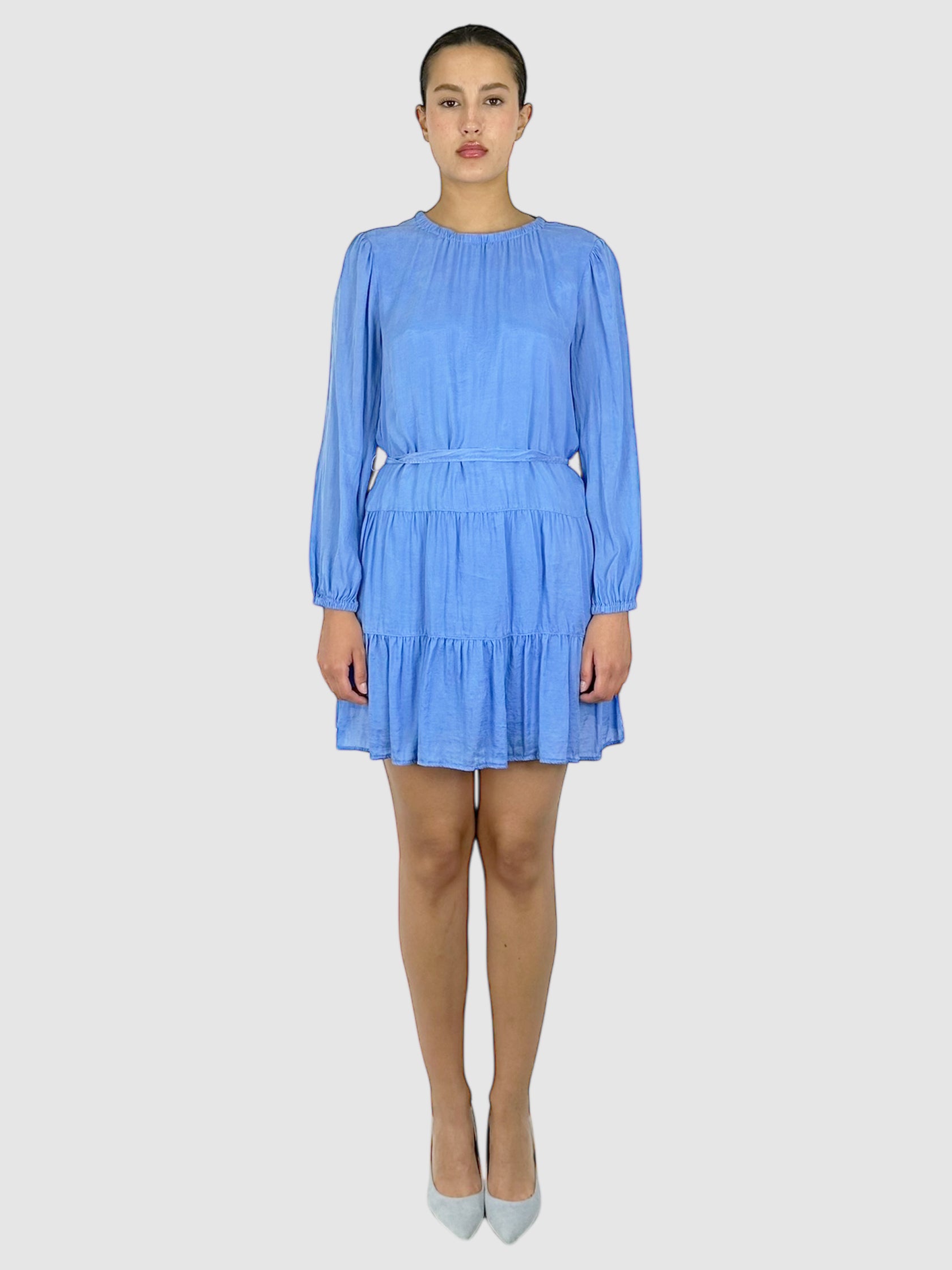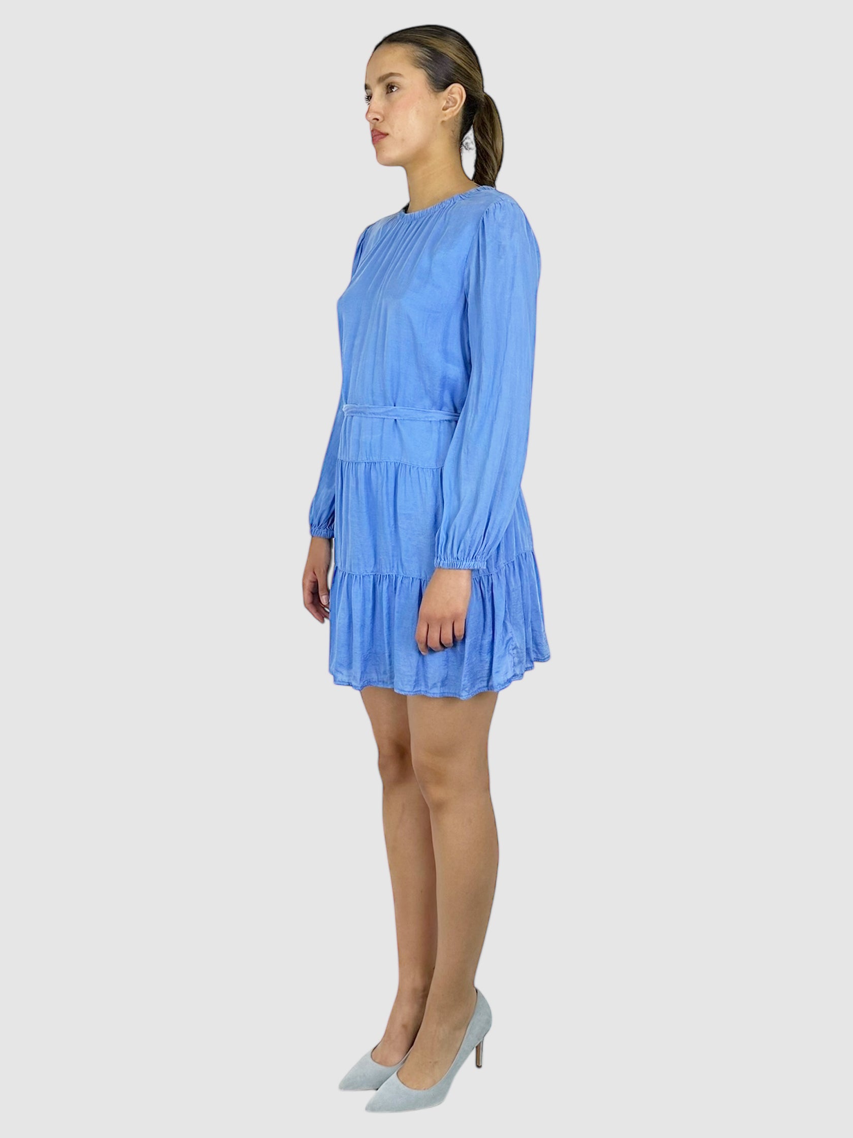 Bella Dahl Light Blue Tiered Ruffle Long Sleeve Mini Dress - Size Small.