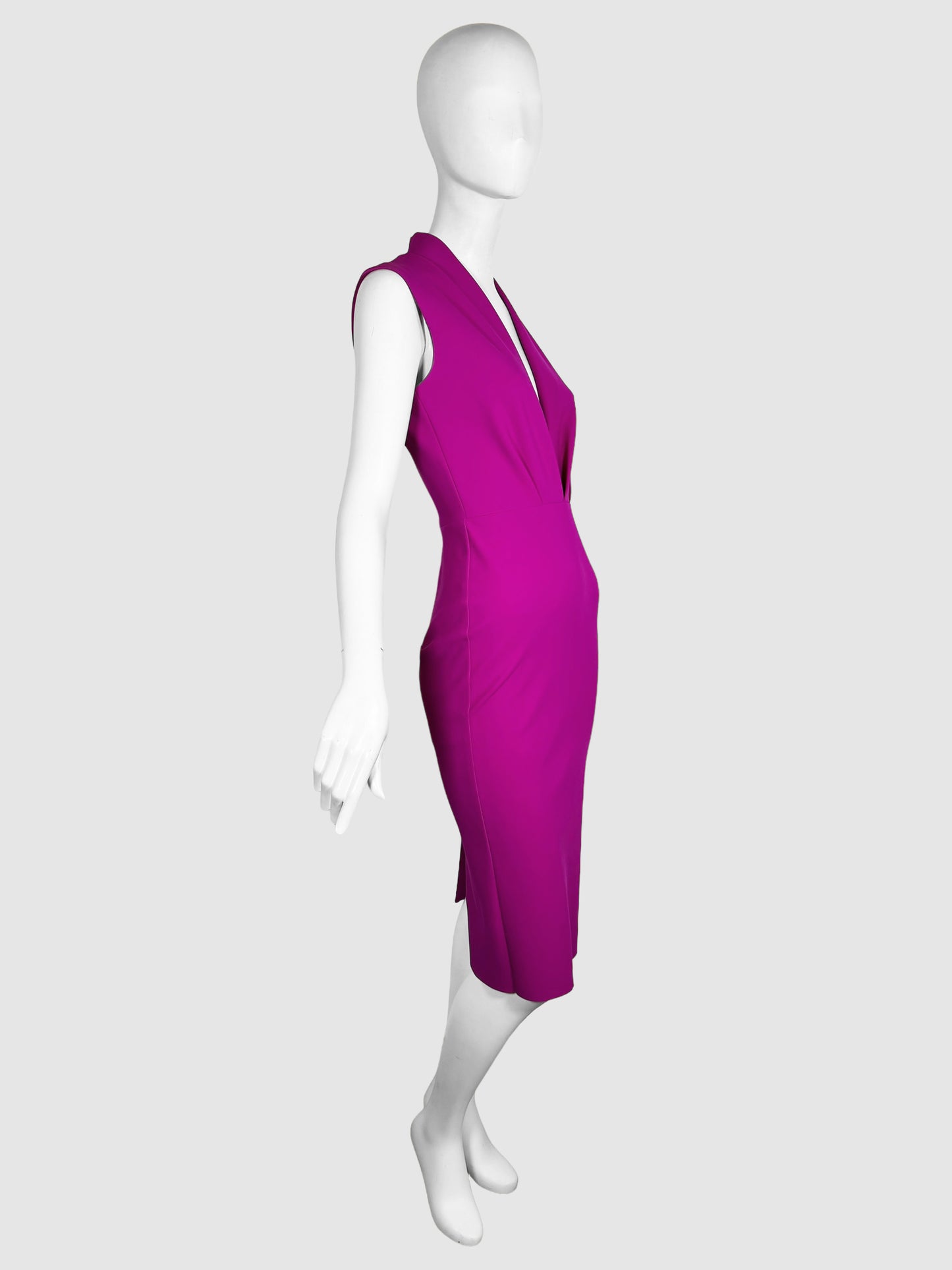 Greta Constantine Fuchsia Pink Vanna V-Neck Knee-Length Dress, Size Extra Small.