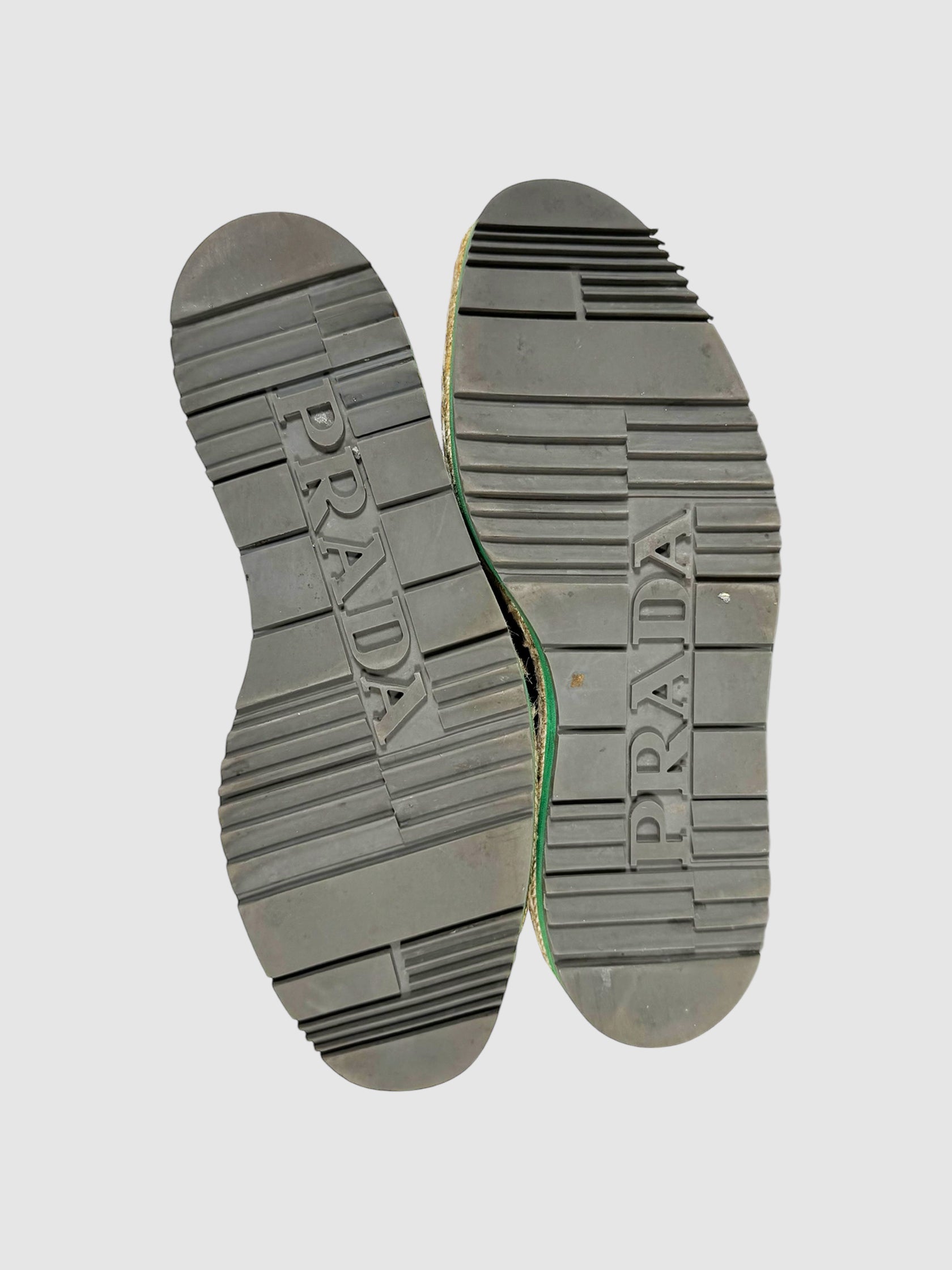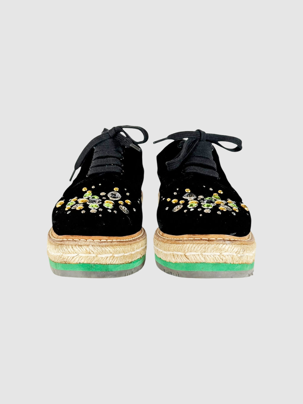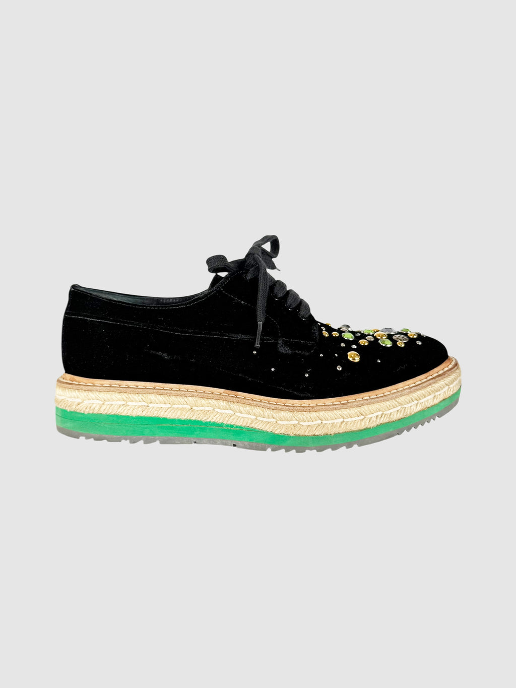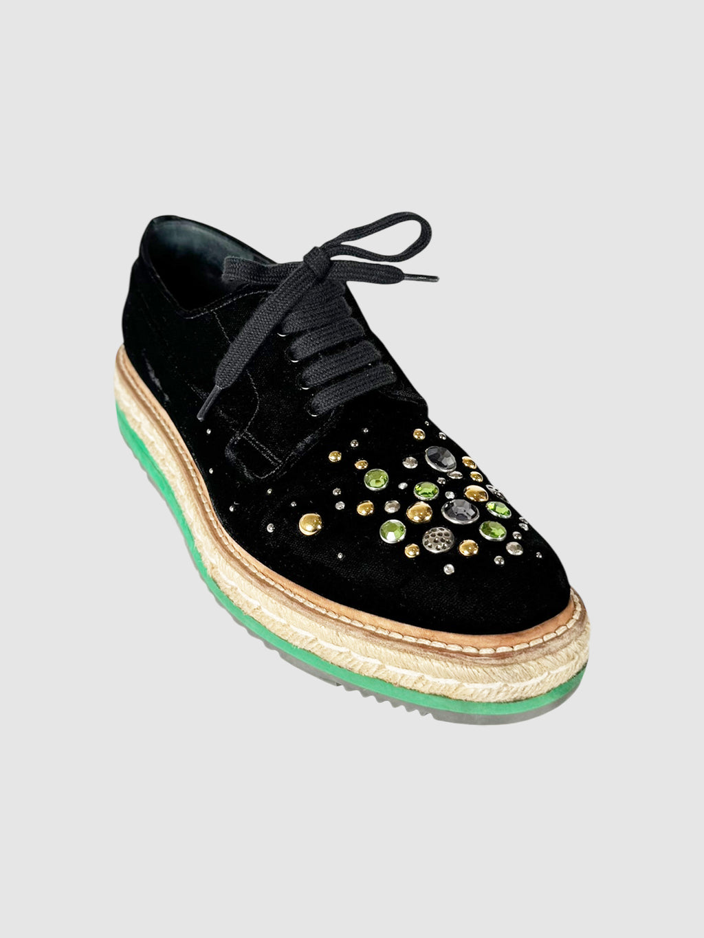 Prada Velvet Platform Crystal Studded Oxford Sneakers, Size 37.5.