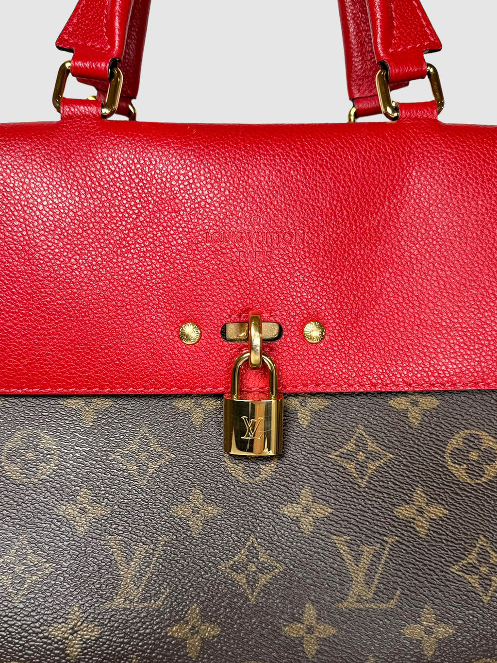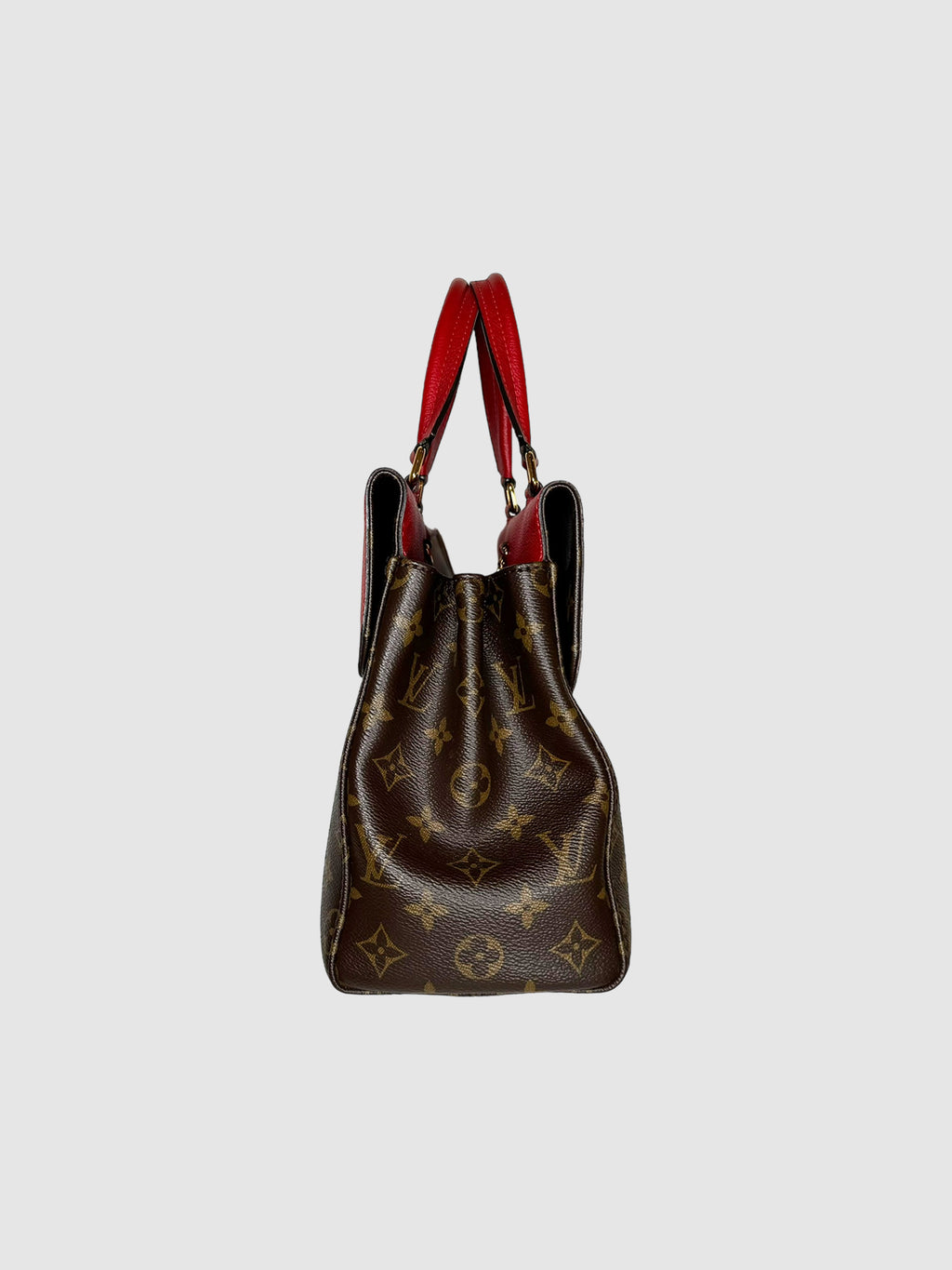 - Brown Monogram with Red Pebbled Leather Trim and Dual Handles