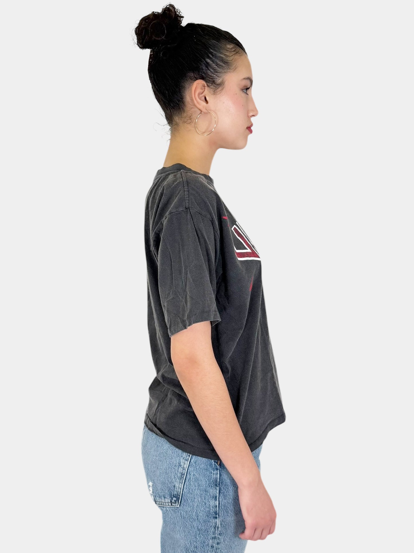 Anine Bing Washed Grey with Red Text Short Sleeve "Viper" Graphic T-Shirt, Size Large.