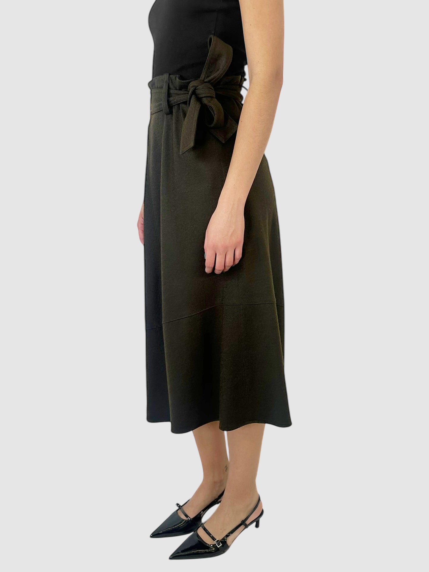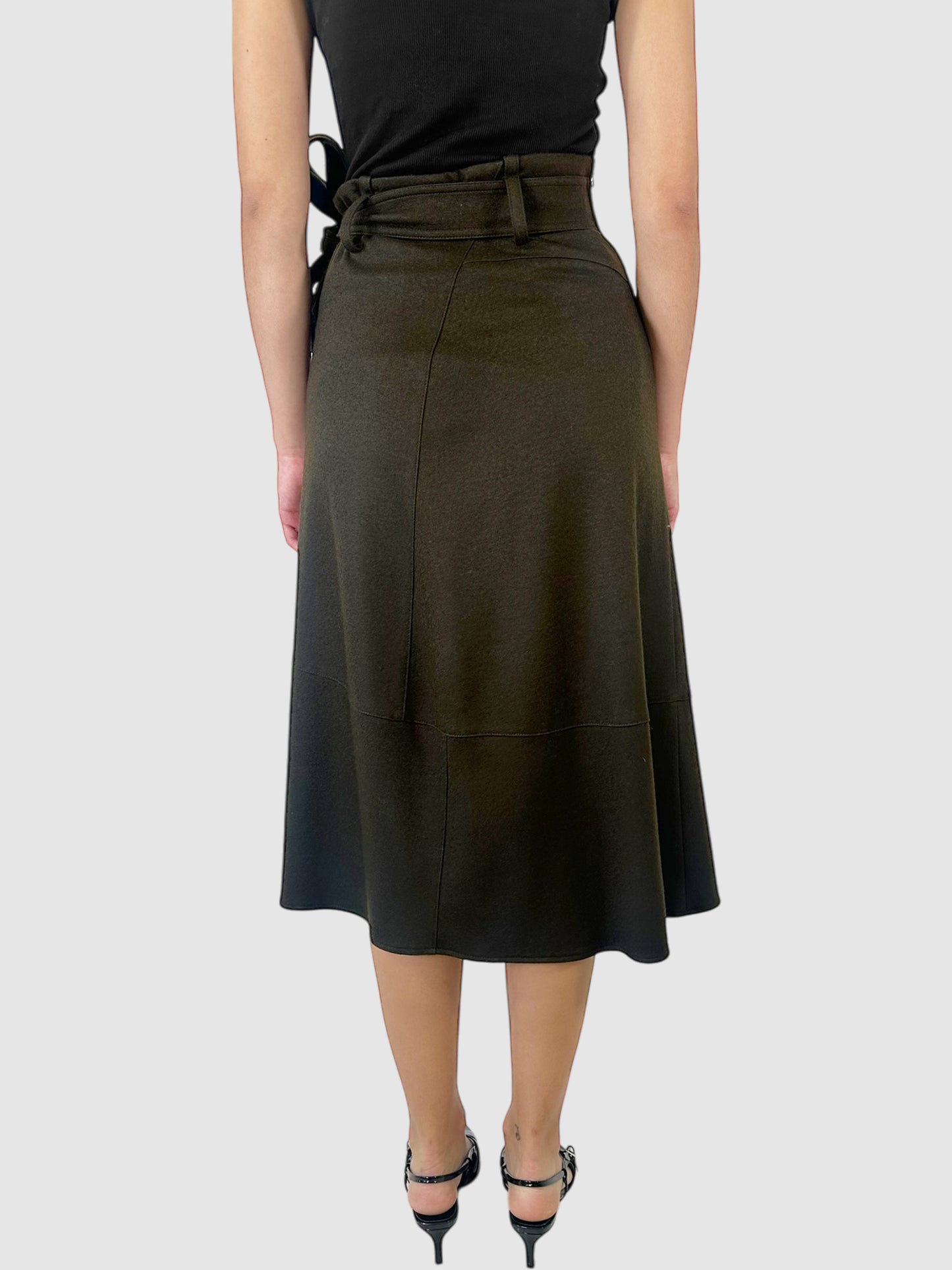 Vince Hunter Green Wool Blend Belted Midi Skirt - Size 6.