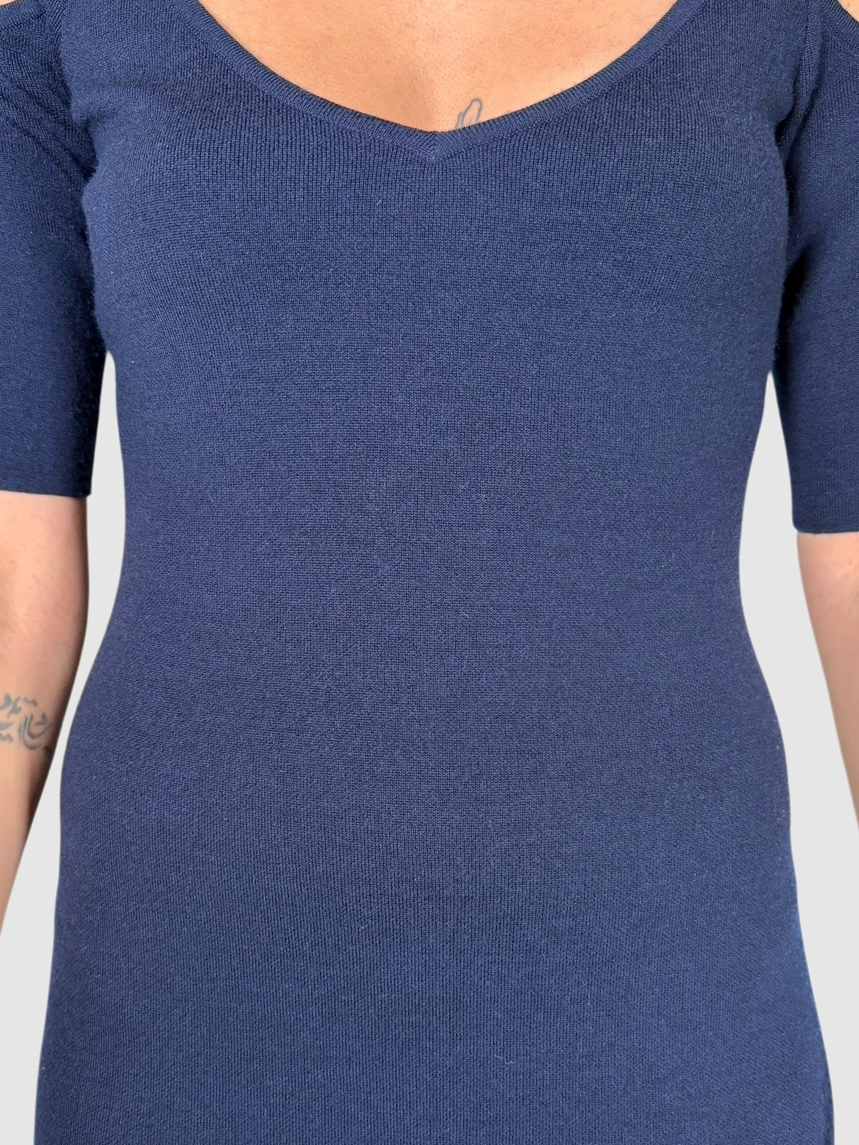 Gabriela Hearst Navy Blue Wool-Blend Cold Shoulder Maxi Dress - Size Medium.