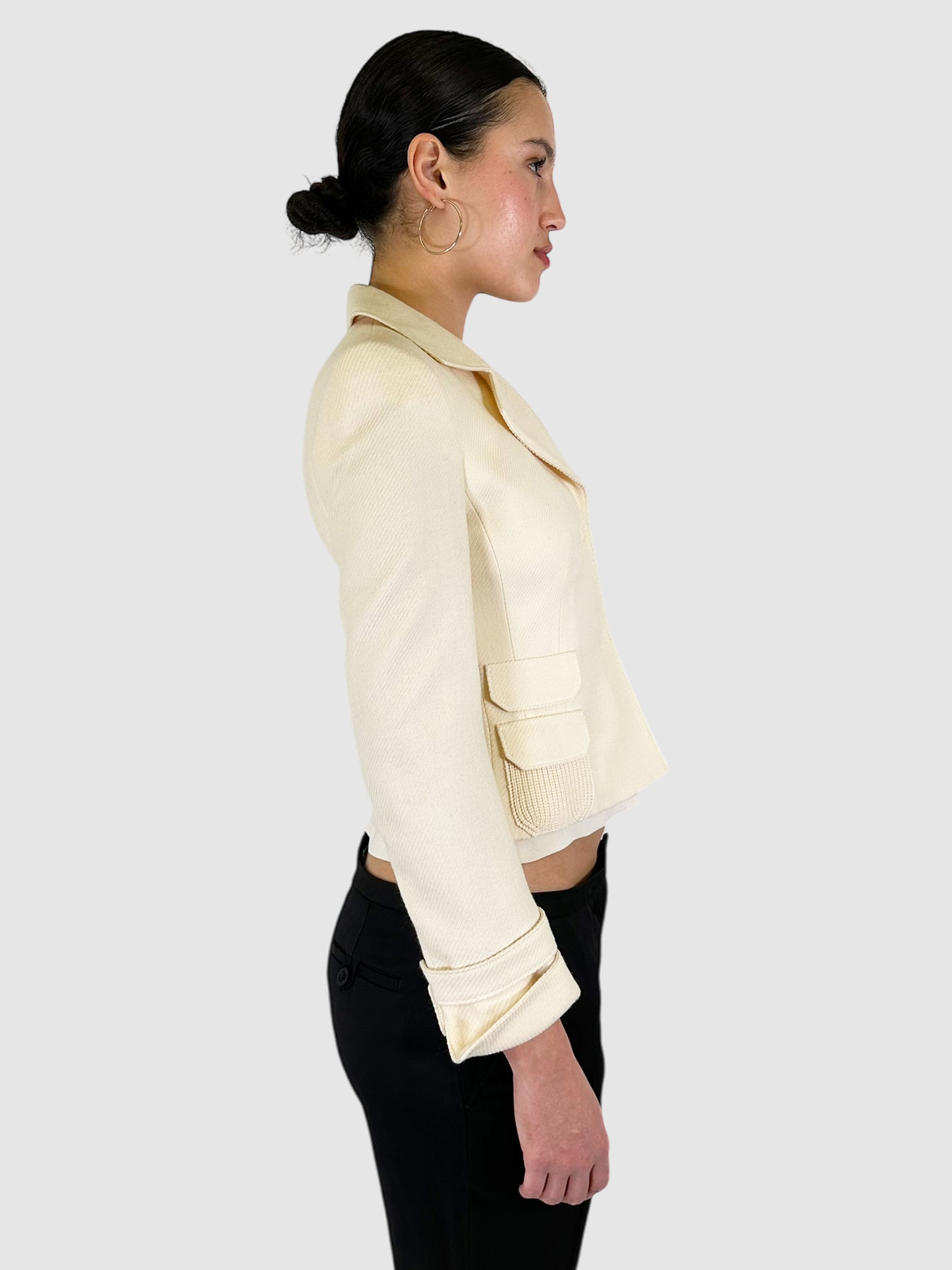 Akris Cream Wool Single-Breasted Blazer - Size 4.