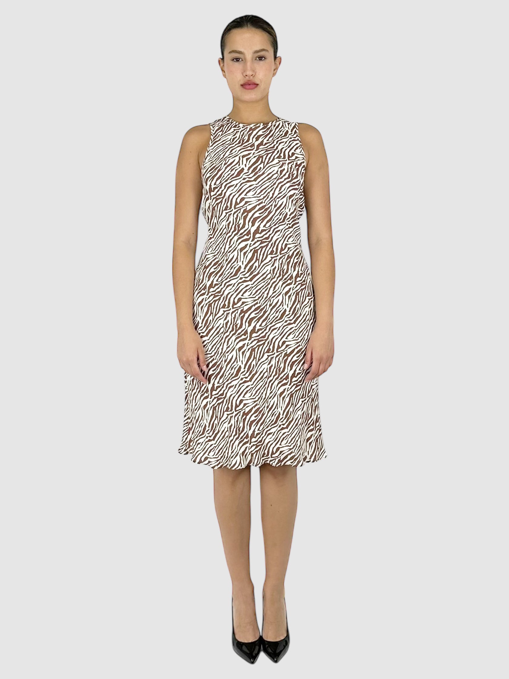 Wayf Brown and Off-White Sleeveless Zebra Print Midi Dress - Size Small.